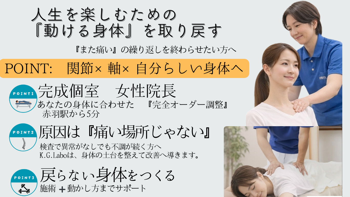 K.G.Laboでは、その場の痛みを取るだけでなく、